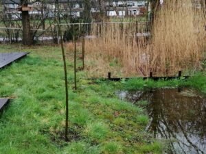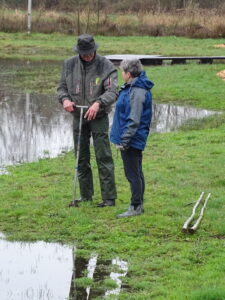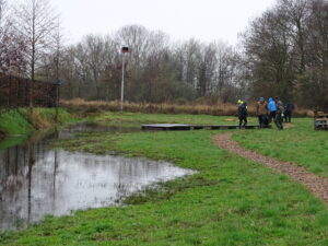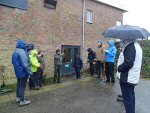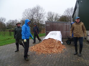 Met een aantal vrijwilligers en leden startten deze in de regen met het onderhoud van de paden en het planten van jonge knotwilgen.