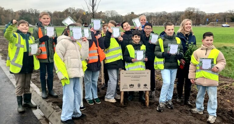 Na het planten hebben alle leerlingen van de gemeente een oorkonde en een mooie plant gekregen. Op de steunpalen naast hun boom hebben ze hun naam geschreven. In mei gaan we samen met de leerlingen terug om te kijken hoe hun bomen erbij staan en hoe ze zijn gegroeid.