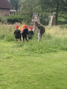 Ze hebben onder andere kleine kriebelbeestjes gezocht, een afdruk van de schors van een boom gemaakt en een regenworm over hun hand laten lopen. Ook hebben ze bij elke opdracht een huisje gezocht waar kabouters wonen. Een van de leerlingen uit groep 1 vraagt zich af ,als zij het huisje ziet ,waarom het licht niet aan is.