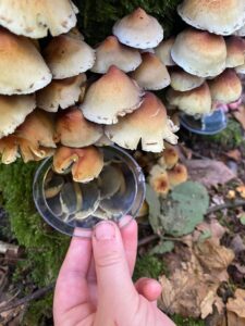 - Met een spiegeltje konden wij de onderkant van een paddenstoel zien