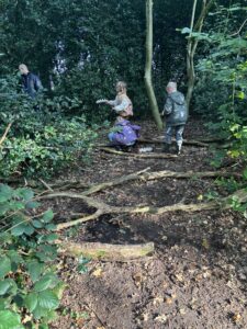 De leerlingen lopen met een groepje met begeleider langs een achttal onderdelen. Slakken, kriebelbeestjes zoeken, paddenstoelen, voelkist, zaden zoeken zijn voorbeelden van deze onderdelen.