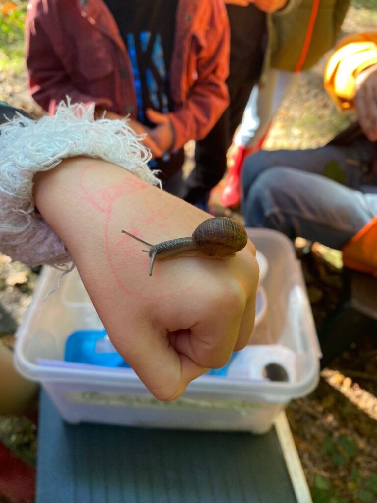 De leerlingen lopen met een groepje met begeleider langs een achttal onderdelen. Slakken, kriebelbeestjes zoeken, paddenstoelen, voelkist, zaden zoeken zijn voorbeelden van deze onderdelen.