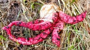Als kers op de pudding troffen we diverse exemplaren van de inktviszwam aan. De inktviszwam is oorspronkelijk afkomstig uit Australië en Tasmanië en is in 1921 voor het eerst in Europa gesignaleerd. Waarschijnlijk zijn sporen van deze zwam meegekomen met Australische