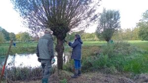 Moeten ze natuurlijk wel regelmatig opgeschoond worden. En precies dat deden die vrijwilligers van IVN Oldenzaal-Losser e.o.. Bij de Losserhof liggen een paar van die juweeltjes, omzoomd door stoere knotwilgen. Om stoer te blijven is een harde hand wel nodig: wie zijn knotwilgen liefheeft, spaart de zaag niet.