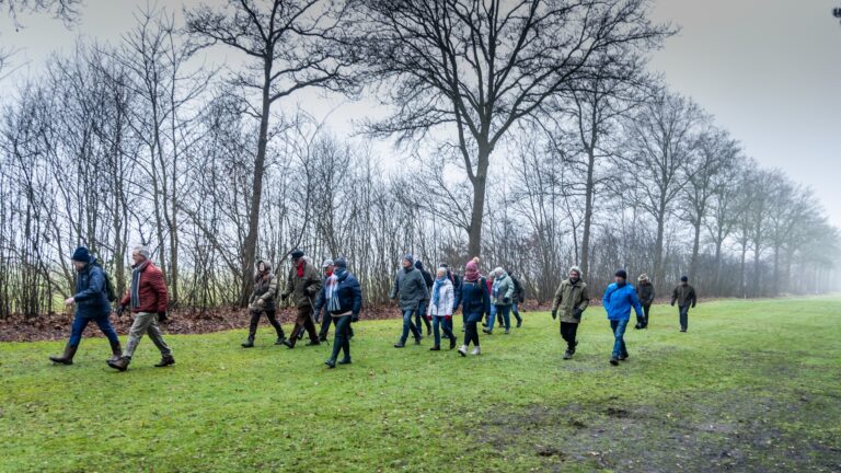 Vanaf het startpunt bij de Klootschietvereniging in Beuningen – waar een deel van de deelnemers naartoe carpoolde en anderen sportief op de fiets kwamen – begon een mooie wandeling van zo’n 6 kilometer. Onderweg was er volop aandacht voor natuurweetjes, uitleg over natuurherstel en natuurlijk ruimte voor een gezellige nieuwjaarsborrel bij de Commiezenhut aan de Vrijdijk.