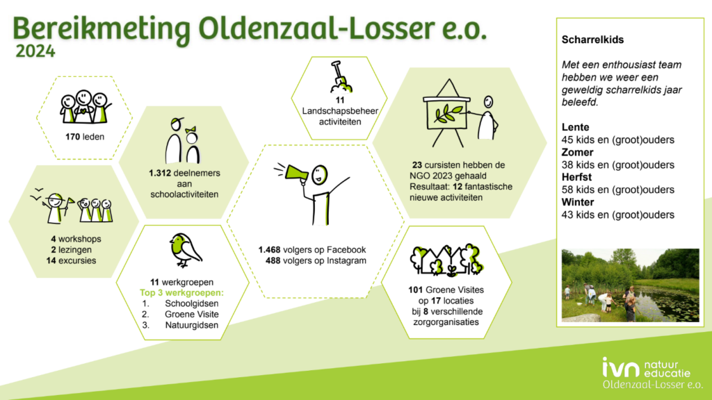 Alle resultaten worden door IVN landelijk samengevoegd in één overzicht. Dat laat zien hoeveel werk alle IVN’ers samen verzetten en hoeveel mensen we bereiken: meer dan 400.000! Een indrukwekkend resultaat, waar wij als afdeling met trots deel van uitmaken.