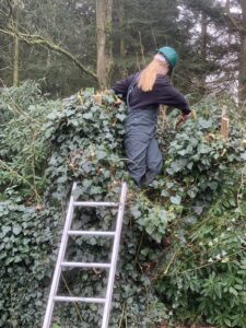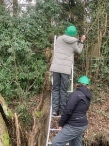 Afgelopen woensdag, 28 februari 2024, en de komende twee woensdagen gaan wij met leerlingen van de afdeling groen van het Twents Carmel College, locatie Potskampstaat de wilgen langs de Stakenbeek aan de Boerskottenlaan knotten. Voor deze leerlingen is het een prachtige praktijkopdracht. De meesten gaan dan ook met veel plezier aan de slag. Snel komen ze erachter dat zagen met de pistoolzaag (handsnoeizaag), staand op een ladder, best inspannend is en de jas gaat dan ook snel uit. Ze verwijderen eenjarige takken (de tenen), tweejarige (de staken) en de meerjarige takken (het boerengerief).