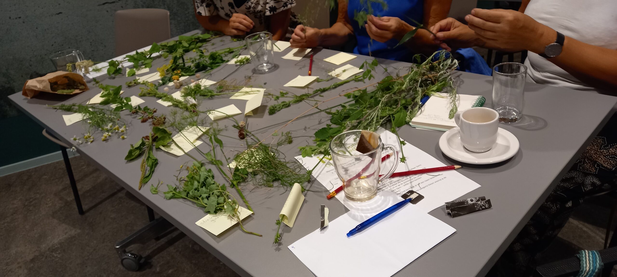 Deze avond stond in het teken van wilde planten in onze regio. Annet van der Veen (coördinator van de Heemtuin Veermans Hof in Wijhe) en Lilian Bults (natuurgids en een van de organisatoren van de activiteitenwerkgroep), hadden allerlei planten op de tafels neergelegd. Per groepje konden we de planten bekijken op kleur, geur, vorm en de naam van de plant aangeven. Er ontstond grote hilariteit als je de naam van de plant niet wist en zelf een naam kon bedenken.