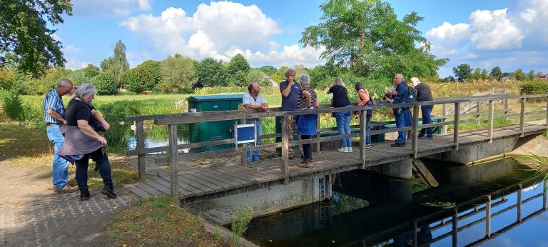 Zondag 11 september hebben we met 10 deelnemers met prachtig weer en 2 gidsen het gebied verkend bij de vistrap aan de Diepenveenseweg op de Boskamp. Ecoloog Gerrit Jan van Dijk van het Waterschap Drents Overijsselse Delta, vertelde over de noodzaak van waterbergingsgebieden om voldoende water te hebben. Daarnaast ook over het maken van bv deze vistrap zodat de vissen de sluis kunnen omzeilen om hogerop te kunnen zwemmen en dat dit gebied heeft zich kunnen ontwikkelen tot een bijzonder mooi, gevarieerd stuk natuur. Samen met gids Gerrit Jansen kregen we informatie over al het moois wat daar groeit en leeft, met de kennis van menig deelnemer werd het een interessante middag. De koppeling aan het maken van foto’s nodigde uit om geconcentreerd te kijken en te ontdekken. Door het elkaar wijzen op bijzonderheden of mooie details werd het erg leuk. De opgestuurde foto’s komen op de website van IVN Olst-Wijhe, daaruit wordt 1 foto gekozen die als mooiste eruit komt.