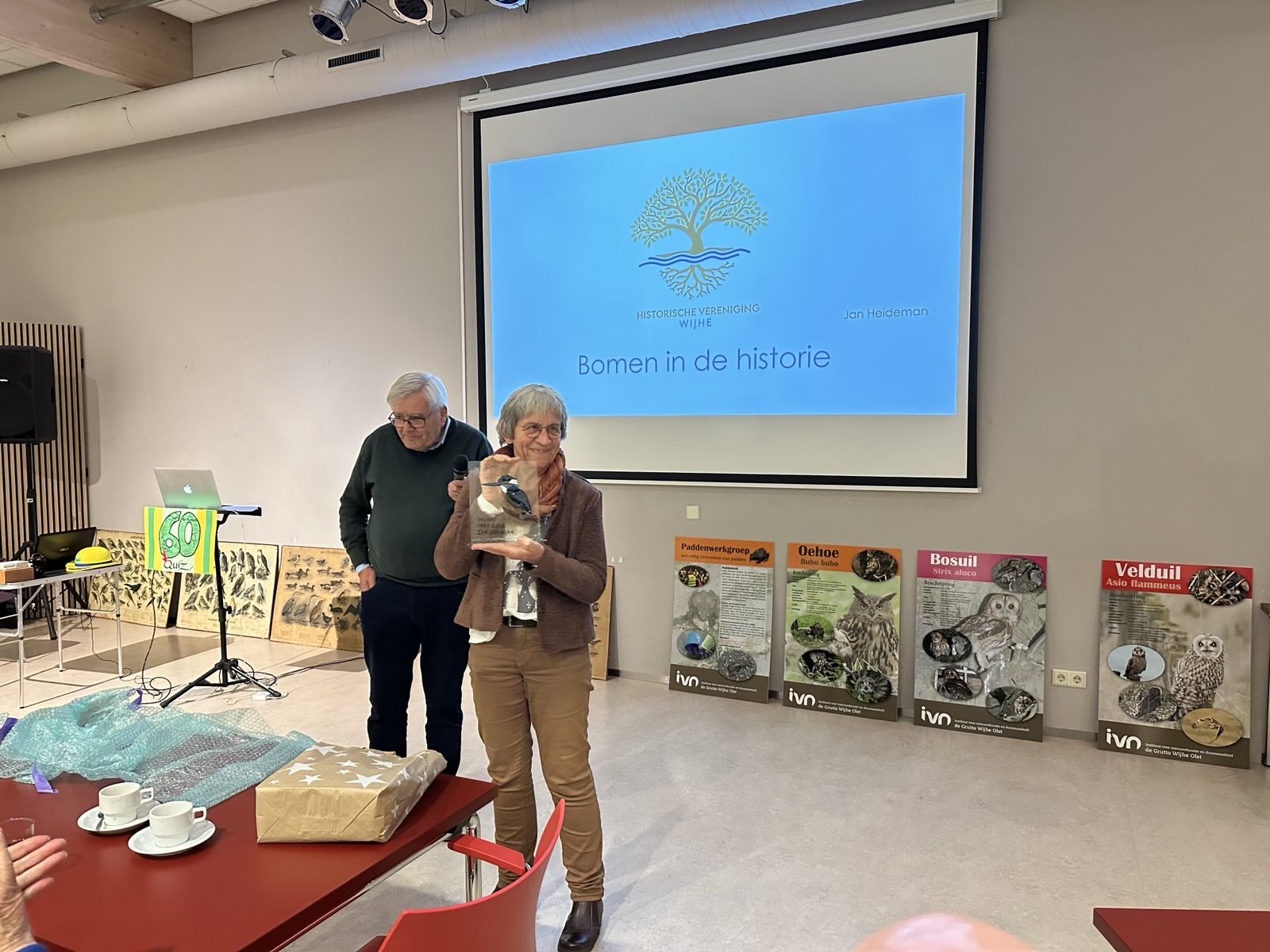 We boden een gevarieerd programma. Jan Heideman van de Historische Vereniging Wijhe vertelde over enkele bijzondere kenmerken en gebruik van bos en bomen in de omgeving vroeger en nu. Hij wist ons mee te nemen over o.a. bomen door de eeuwen heen met écht leuke weetjes.
