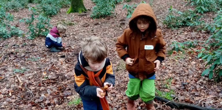 We verzamelden ons in de kapschuur van Zorgboerderij ’t Hamel, waar Liesbeth het verhaal van de Eekhoorn voor las. Vervolgens gingen we met z’n allen naar het bos van de Gelder en gingen daar op zoek naar noten en vruchten voor de eekhoorn. In korte tijd was er door iedereen heel wat voedsel voor de eekhoorn verzameld. Daarna werden er nestjes gebouwd waar de eekhoorn al zijn eten kan bewaren. Tussendoor ging Ans aan de slag met het schminken van enkele kinderen tot eekhoorns en werden ze ook nog versierd met een mooie pluimstaart. Tot slot werd er in het bos een tikspel gedaan. Een wolf en een vos probeerden de eekhoorns te tikken en die konden zich redden door bij een boom te gaan staan.