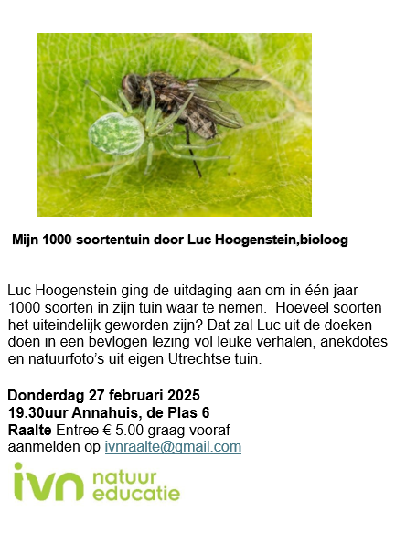 Lezing in Raalte: Mijn 1000 soortentuin door Luc Hoogenstein