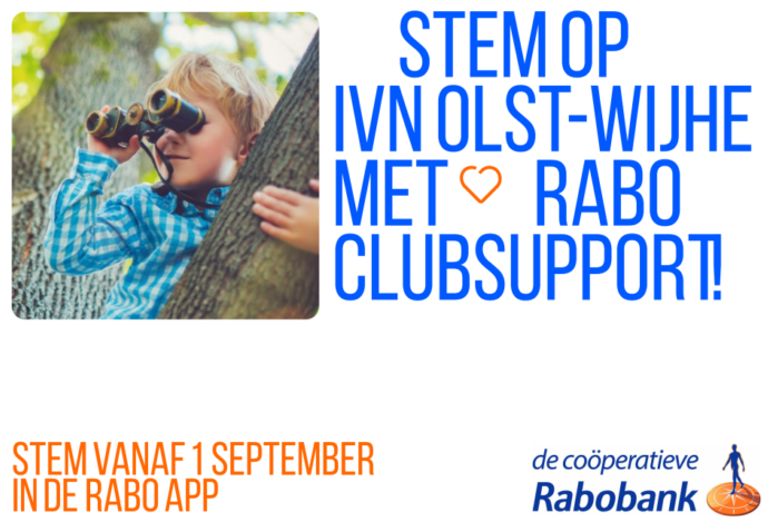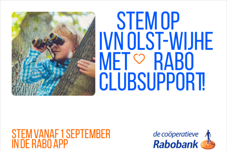 Ook dit jaar doet IVN Olst-Wijhe mee met Rabo Club Support. Iedere stem levert onze vereniging geld op, waarmee we extra lezingen, excursies en cursussen kunnen organiseren.