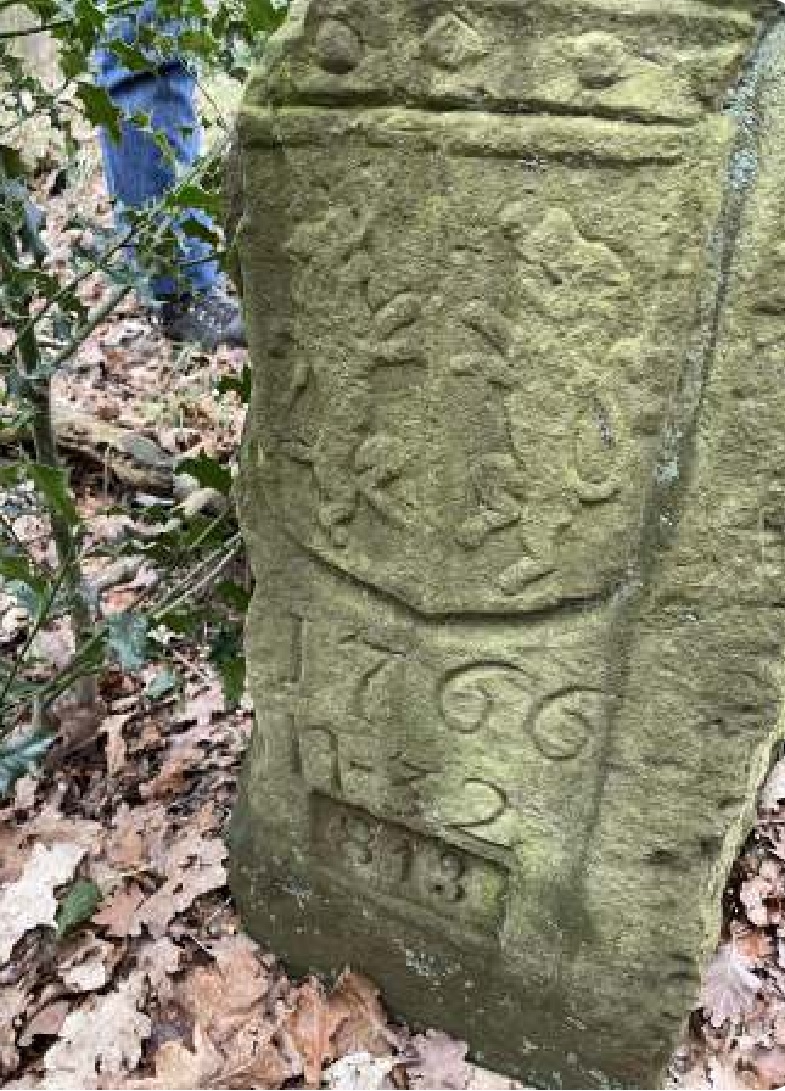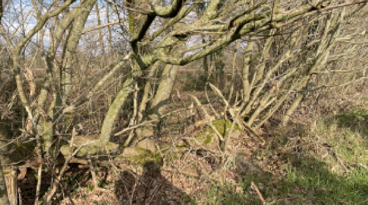Zoals de titel al doet vermoeden was het een wandeling met historische elementen. We liepen langs overblijfselen van een landweer en langs grensstenen. Een landweer is een aarden wal met aan beide kanten een sloot. De wal was begroeid met een heg die gevlochten was (met onder andere meidoorn en eikenhakhout). De landweer hield vee en gespuis tegen maar gaf ook een grens aan tussen stukken land.