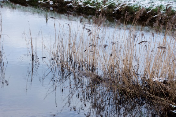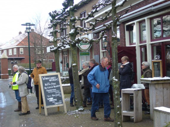 Echter, onder het laagje sneeuw liggen blubberige paadjes en wat stukken betekenen dan ook soppen en soms uitglijden. Schoenen, laarzen en broekspijpen bleven dan ook niet schoon en droog. Via Lochhuizen lopen we langs de Schipbeek en de wandelaars die voorop wandelden werden verrast door een voorbij vliegende supersnelle ijsvogel. Tegen half 1 kwamen we aan op de Visschemorsdijk en stonden Linie en echtgenoot de wandelaars op te wachten met koffie/ thee en krentenwegge. Een versnapering die zeer in de smaak viel. Een stuk van het laarzenpad is het volgende onderdeel van de tocht, waarin we langs het nieuwe ingerichte deel van de Schipbeek lopen.