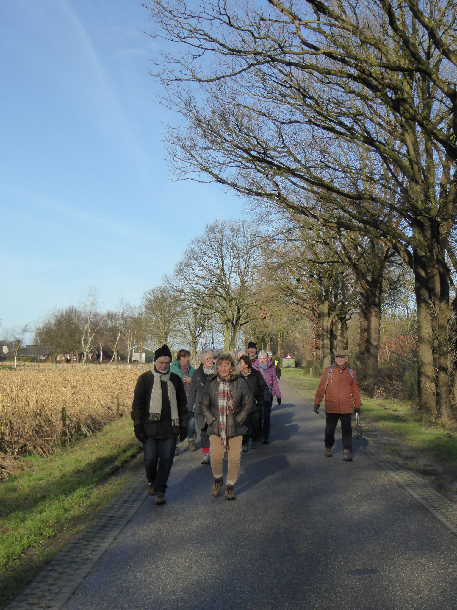 Prachtig weer met een stralende zon was de ontvangst van de wandelaars op de parkeerplaats van Sportpark de Bijenkamp in Eibergen. Om 11 uur gingen we van start met 34 enthousiaste deelnemers.