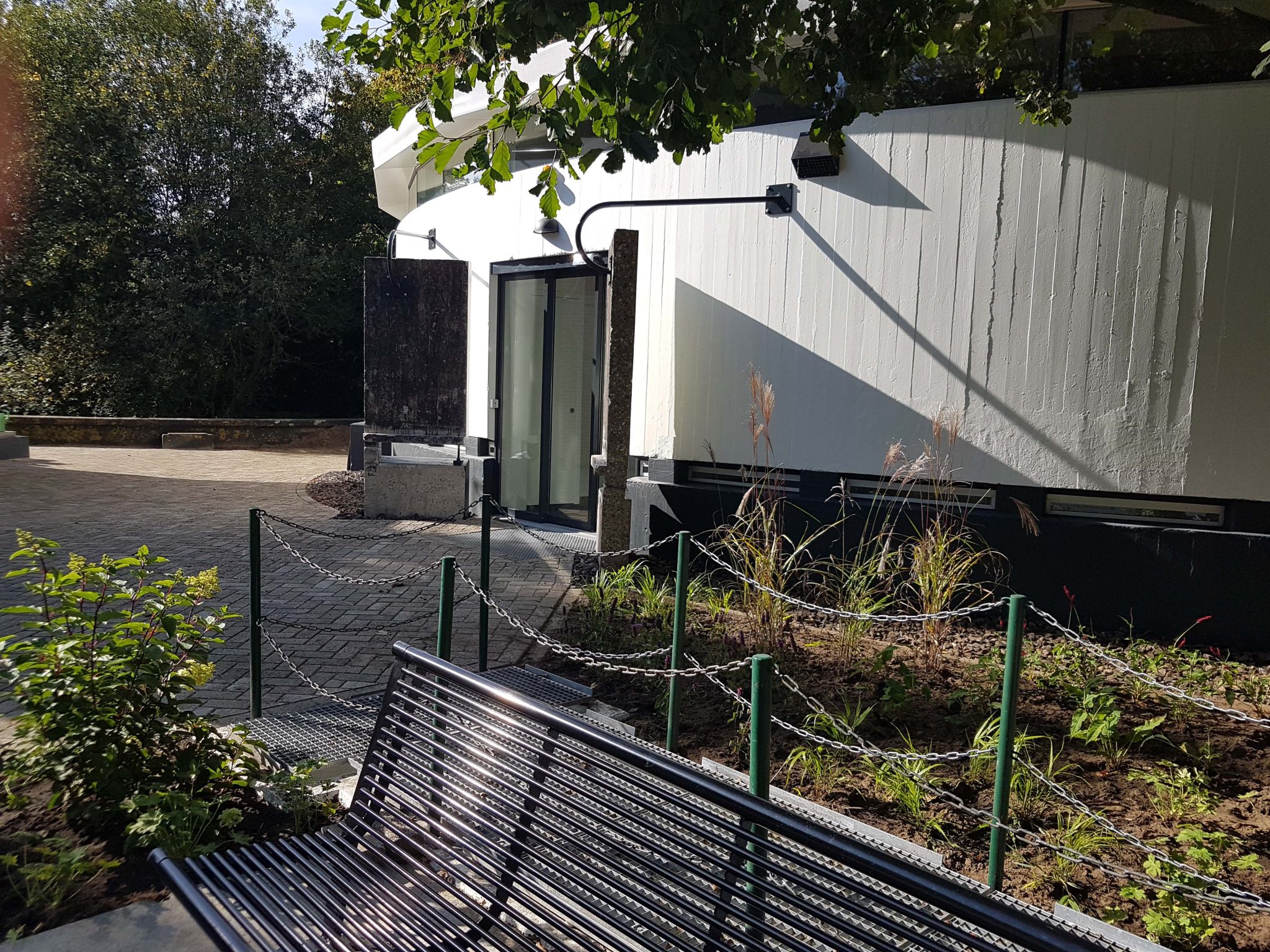 Nog een laatste stuk te gaan langs beken en over oude spoorlijnen, die nu in gebruik zijn als wandel/fietspaden. Om 16:00 uur zijn we terug bij De Kronenkamp. Deelnemers van “buiten” maken nog graag gebruik van de mogelijkheid de gebouwen te bezichtigen en een rondleiding over het park te maken.