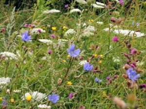 Vegetatie met o.a. wilde peen, cichorei en knoopkruid.
