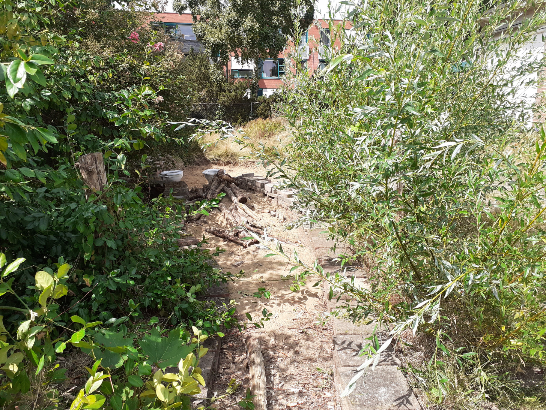 Zoals jullie in de nieuwsberichten op deze site al hebben kunnen zien, zijn we druk bezig in de tuin van de Klaproos. Er zijn al heel wat tegels gelicht en al heel wat kruiwagens zand naar de zandbak verplaatst. en ondanks dat we ineens een hele harde laag onder al dat zand tegenkwamen, hebben we al ideëen hoe we hier welke planten goed kunnen laten aanslaan. De eerste regenton is er en we zijn al aan het rekenen hoeveel kuub grond (en welke soort) we kunnen laten komen vanuit Operatie Steenbreek. Er zijn nog een paar vierkante meter stenen te lichten en kruiwagens zand te kruien en later natuurlijk ook grond. En dan kunnen de planten er in. Een droog deel in de zandbak (waar veel van het zand naar toe is gegaan) met een kunstwerk van onze buren en varens en mossen, een nat deel met hoogteverschillen (stapelmuurtjes en zo) bij de wilgen, met schaduw plekken en een zonnig deel tegen het gebouw aan. Zo maken we een diverse tuin waar het goed toeven is. Kom voorla kijken en liefst ook meedoen! 1 augustus zijn we er sowieso weer om 9.30u en anders kan je ook Resie bellen (zie nieuwsbrief voor telefoonnummer)