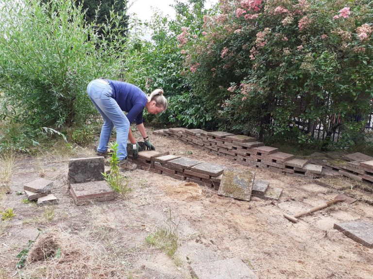 Maandag 11 Juli was het weer zover, hard werken in de tuin van de Klaproos, en met resultaat! Zie hoe Saskia en Jeanette weer een aantal vierkante meters tegel vrij (en onkruid vrij) hebben gemaakt, en de stapelmuur begint mooi vorm te krijgen! Wil je het met eigen ogen zien hoe het wordt? Maandag 18 juli en 25 juli wordt er vanaf 13.30 weer aangepakt! En je mag natuurlijk altijd meedoen, gelijk een gratis work-out.