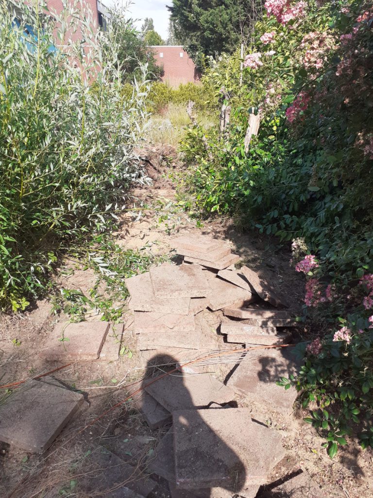 Maandagmiddag 5 juli. De eerste stappen van de Klaproos make-over zijn gemaakt. Jeanette, Wietske, Lucianne, Willem, Ferry en Resie hebben hun schouders er onder gezet en vol enthousiasme stenen gelicht, worteldoek verwijderd, een tree bij de zandbak geëgaliseerd, begin van een stapelmuur gemaakt en ook nog de nodige spullen opgeruimd. Willem heeft helemaal een work-out gehad. Het is nog een hele klus en kunnen alle handen gebruiken die mee willen helpen. Dus als je maandag 11 juli om 10 u of maandag 18 en 25 juli om 13.30u kan, dan ben je van harte welkom! Er komen nog meer data.
