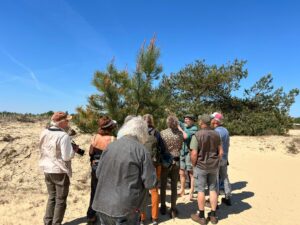 Afgelopen zaterdag hebben we genoten van een prachtige excursie door het Drents Friesewold. Onder leiding van Edwin de Groot maakten we onder een stralend zonnetje een prachtige wandeling met speciale aandacht voor de flora. Edwin heeft de gave om zijn verhalen prachtig te vertellen zodat ook gisterochtend vele deelnemers aan zijn lippen hingen. Edwin vertelde over de grassen, zegges, kartelbladen etc. etc. ook de gevolgen van het teveel aan stikstof kwam duidelijk aan bod. Tijdens deze prachtige wandeling genoten de deelnemers van overvliegende kraanvogels, dartelende groentjes en nog zoveel moois. bijna aan het einde van de excursie kregen we van Edwin nog even les in de bevruchting en ontwikkeling van de Den.