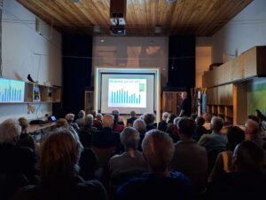 Aaldrik vertelde over zijn weg naar de natuurbelevingen. Als jongetje opgegroeid in Delfzijl vond hij bij de haven een stukje overgebleven kwelder. Een waar eldorado waar hij zijn eerste vogels spotte en het markeerde deze plek als belangrijk startpunt. Het smaakte naar meer in zijn verdere leven. Hij werd een fanatieke twitcher en scoorde zoveel mogelijk vogels. Dat gaf niet de voldoening de hij zocht en dus schakelde hij over naar ‘low-carbon-birding’: Klimaatvriendelijk en vertragend, dus alleen per fiets of lopend vogelsoorten scoren. Iets wat hij eigenlijk nog steeds wel eens doet. Alleen is het scoren vervangen door genieten en verwonderen. Wonende in Norg is zijn omgeving nu de belangrijke plek; daar waar je je thuis voelt tussen flora en fauna.