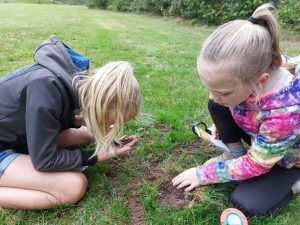 Zaterdagochtend 7 oktober stond de bodemdierendag gepland. Vol enthousiasme gingen de kinderen met zoekkaarten, loepjes en loeppotjes in de hand opzoek naar alles wat leeft in en op de bodem. Bladeren werden opzij geschoven, boomstammen omgekeerd en werd er ouderwets met de schep naar pieren gewipt. Er werden dan ook veel beestjes gevonden zoals; Pissebedden, mieren, duizendpoten, slakken, hooiwagens, kevers, sprinkhanen, oorwormen en nog veel meer diertjes. Hoogtepunt was toch wel de kleine watersalamander die zich al goed in de bodem onder een dikke laag bladeren had verstopt. We kijken terug op een geslaagde bodemdierendag en volgend jaar staat de bodemdierensafari zeker weer op het programma!
