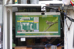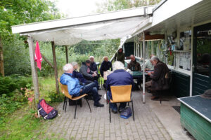 Nadat de huurfietsen waren gehaald, vertrokken we met gezwinde spoed over de dijk richting het vogeltrekstation, waar de vrijwilligers van dienst ons al stonden op te wachten. Het was een weerzien met Kees, die het dit jaar zonder zijn maatje Leo moest stellen, maar gelukkig in Koos een goede en ook spraakzame collega had gevonden.