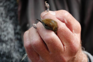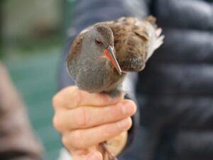 Er staat zo’n 600 meter aan mistnetten opgesteld, waar tussen zonsopgang en zonsondergang minimaal 1 keer per uur een ronde langs wordt gemaakt. Om de waterrallen te slim af te zijn staan daarvoor enkele vangkooien opgesteld. Waar gelukkig voor ons ook een paar vogels in waren gelopen. De rallen worden aan wat meer onderzoek onderworpen. Omdat ze zo’n verborgen leven leiden, is er maar weinig over ze bekend. Dode vogels worden zelden terug gemeld, gewoonweg omdat ze niet worden gevonden. (Grappig genoeg wel in de prooiresten van slechtvalken).
