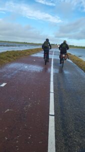Na een goed uur was het alweer tijd om afscheid te nemen van Kees, Koos en Raymond en stapten we op de fiets naar de Kobbeduinen. Enkele buitjes, die niet op Buienradar te zien waren geweest, vielen voor het grootste gedeelte naast ons. Maar je werd er toch wat nat van. 😊