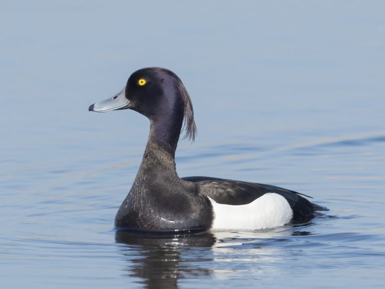 De kuifeenden, die wij nu zien, zijn hier om te broeden. Zij trekken in het najaar, rond september, voor het grootste deel terug naar het zuiden of naar Engeland. In april komen ze weer terug naar hier. Voor de meeste vogels nadert nu dat einde van het broedseizoen. Bij eenden kun je dat goed zien, de mannetjes verliezen hun mooie broedkleed en vallen minder op. Eenden, ook de kuifeend, zijn wel de eersten die nog voor de winter alweer hun mooie broedkleed terugkrijgen. De paarvorming vindt al voor de winter plaats, mannetje en vrouwtje blijven daarna tot en met het broedseizoen samen.