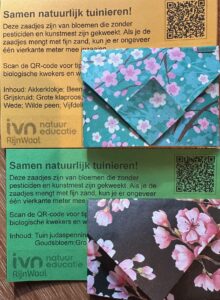 Terug bij onze picknicktafel kregen we nog een koffie en werd iedereen gevraagd om nog wat enquêtevragen in te vullen om te zien of misschien uit de groep nog leuke ideeën en initiatieven zouden komen voor toekomstige activiteiten. We kregen tot slot nog allemaal een echte surprise, 2 prachtig gemaakte fleurige zakjes met zelf verzamelde zaadjes, om die zelf ergens uit te strooien.