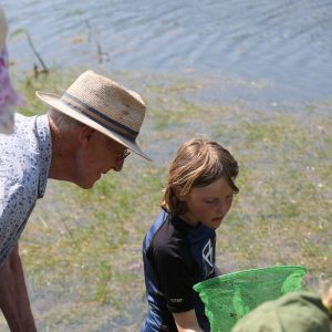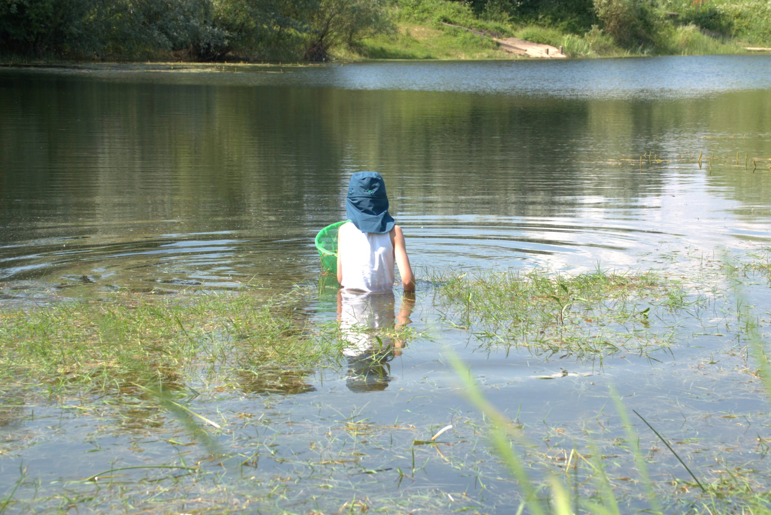 Op deze zeer warme middag, het was 30°C, kwamen er in totaal 13 kinderen met hun ouders naar de plas aan de Bemmelsedijk in Lent. De kinderen en hun ouders gingen zelf op onderzoek uit, gewapend met schepnet, waterbak en loeppot. Samen met onze gidsen Ruud, Theo en Frans ontdekten zij welke dieren en planten er in en rond het water leven.