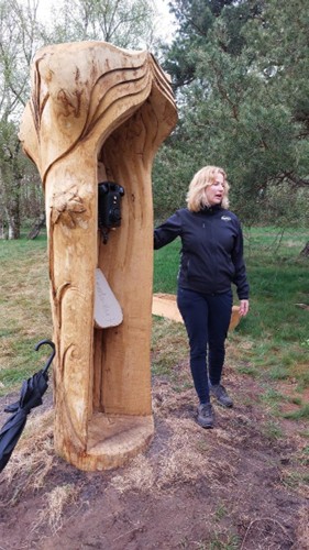 Zij gaf ter plekke tekst en uitleg hoe de plaatsing van deze telefoon tot stand was gekomen.