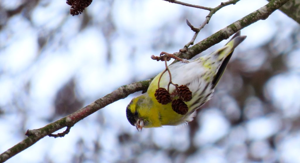 Met dit winterse weer zijn de Sijzen druk aan het foerageren.