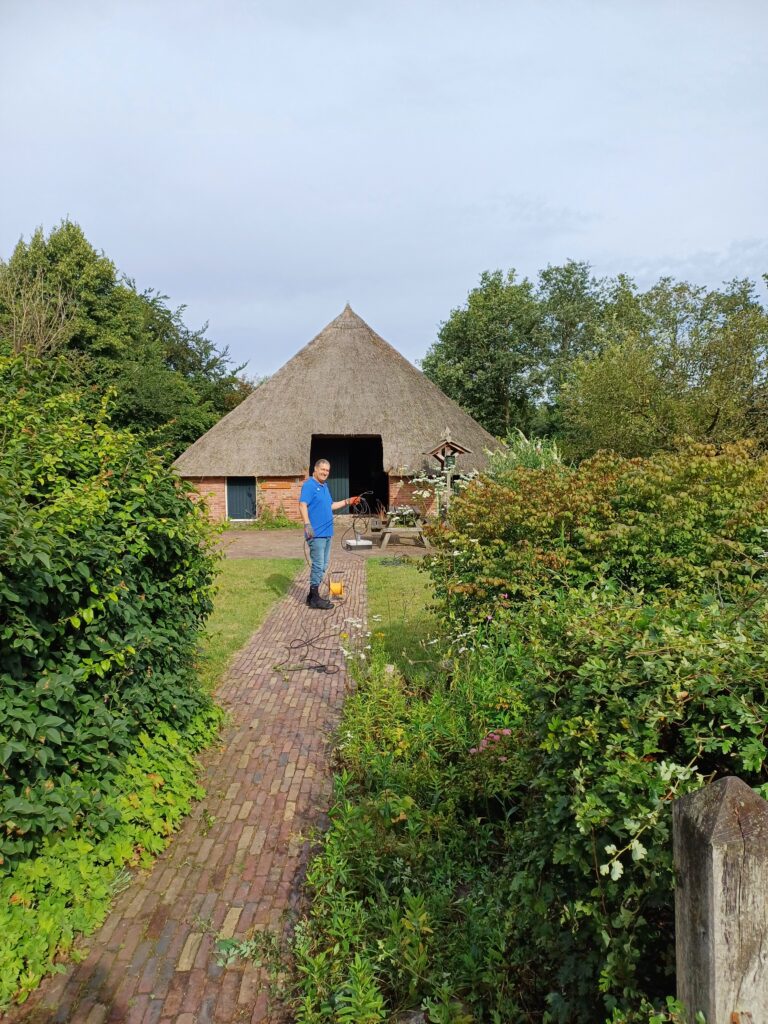 Zaterdag 6 juli heeft een groep vrijwilligers van de Informatieboerderij ‘n Witten, de heg rondom de boerderij weer gesnoeid.