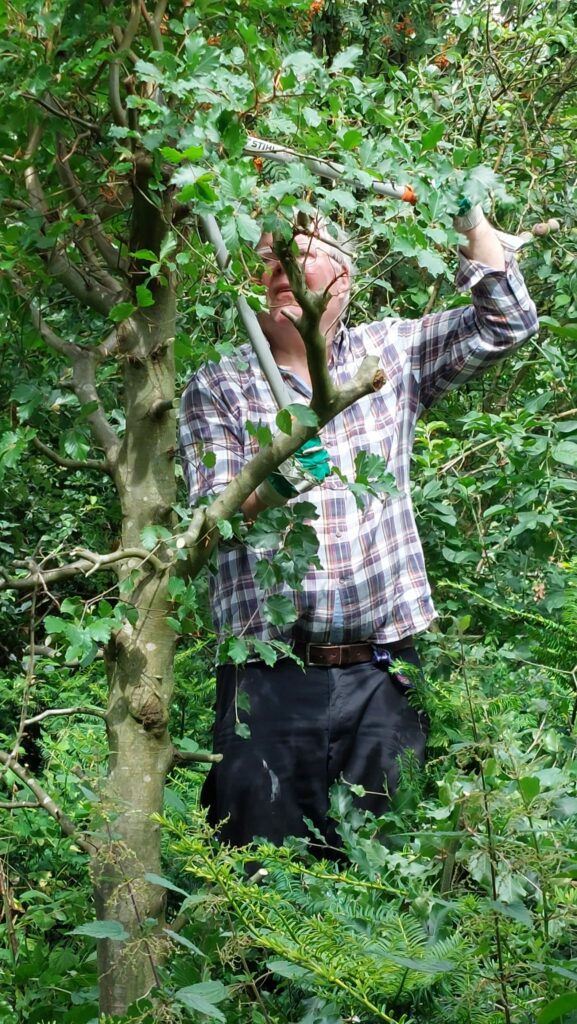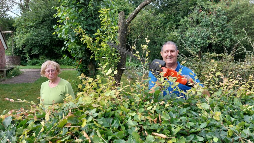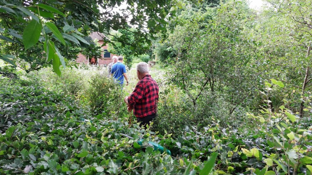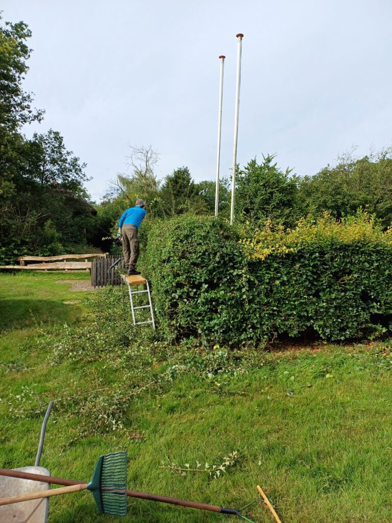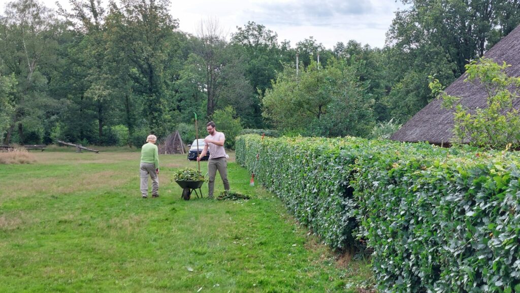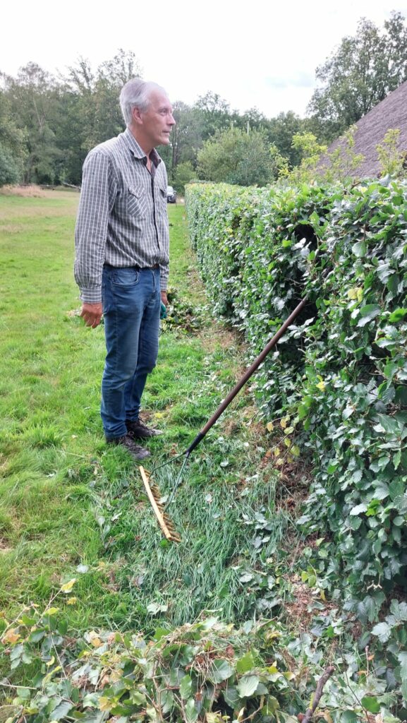 Zaterdag 6 juli heeft een groep vrijwilligers van de Informatieboerderij ‘n Witten, de heg rondom de boerderij weer gesnoeid.