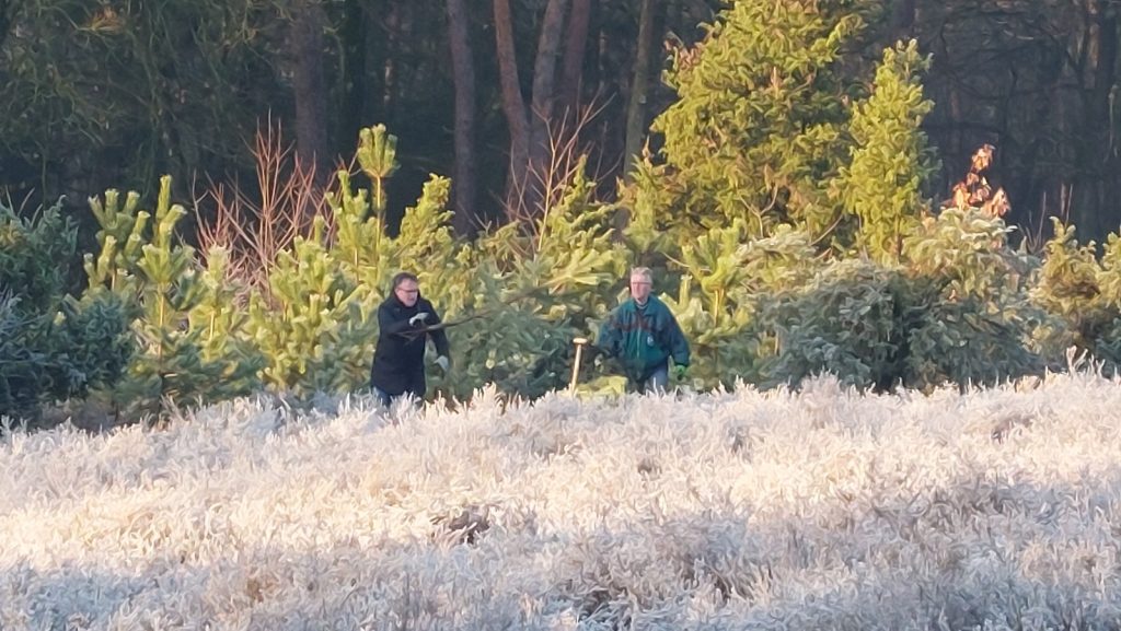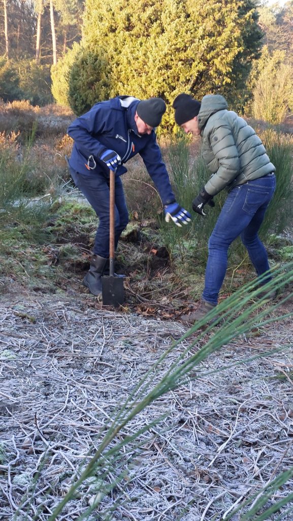 Het heeft vannacht gevroren zodat de ruiten van de auto eerst gekrabd moeten worden. In de auto een grote verzameling schoppen, zagen en handschoenen. Want het is de 4e zaterdag van de maand, dus gaat de bos- heidegroep van het IVN aan de slag met het verwijderen van opslag op de 2e heide aan de Brekeldlaan.