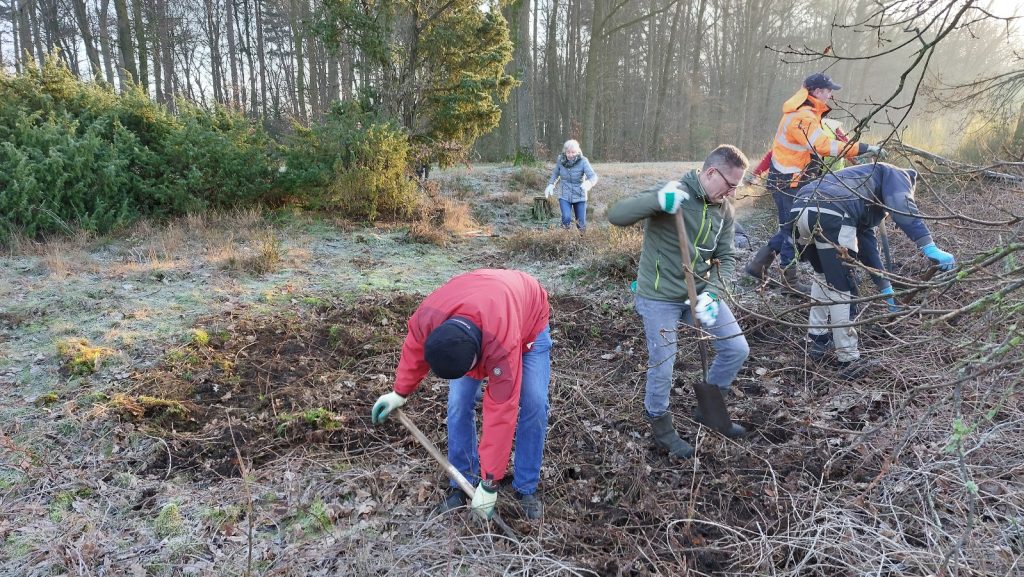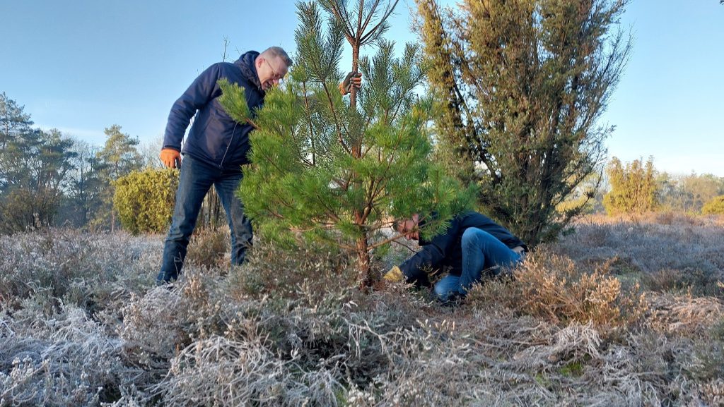 Driftig werd er gewerkt en de nodige bramenstruiken, bremstruiken, dennenbomen en ander spul verwijderd. Alleen de jeneverbes werd gespaard.