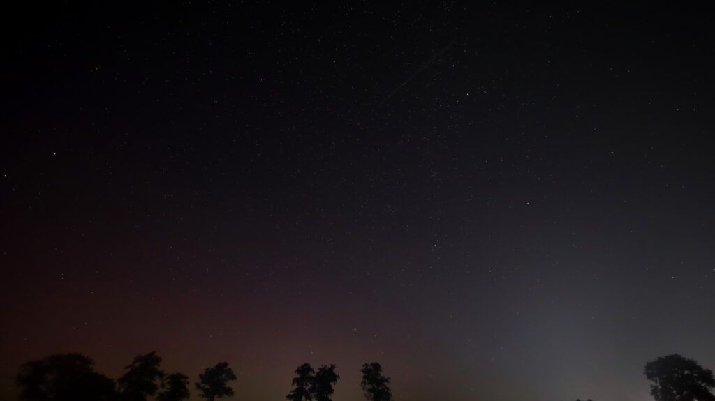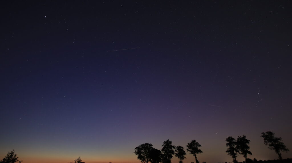 Dan zie je gelijk een paar zaken die jammer zijn, de lichtvervuiling van omliggende steden en de vele overvliegende vliegtuigen.