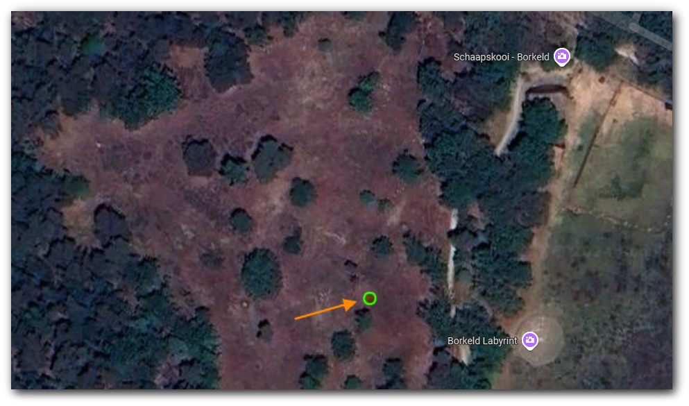 U vindt de boom, recht tegenover de ingang naar het labyrinth.