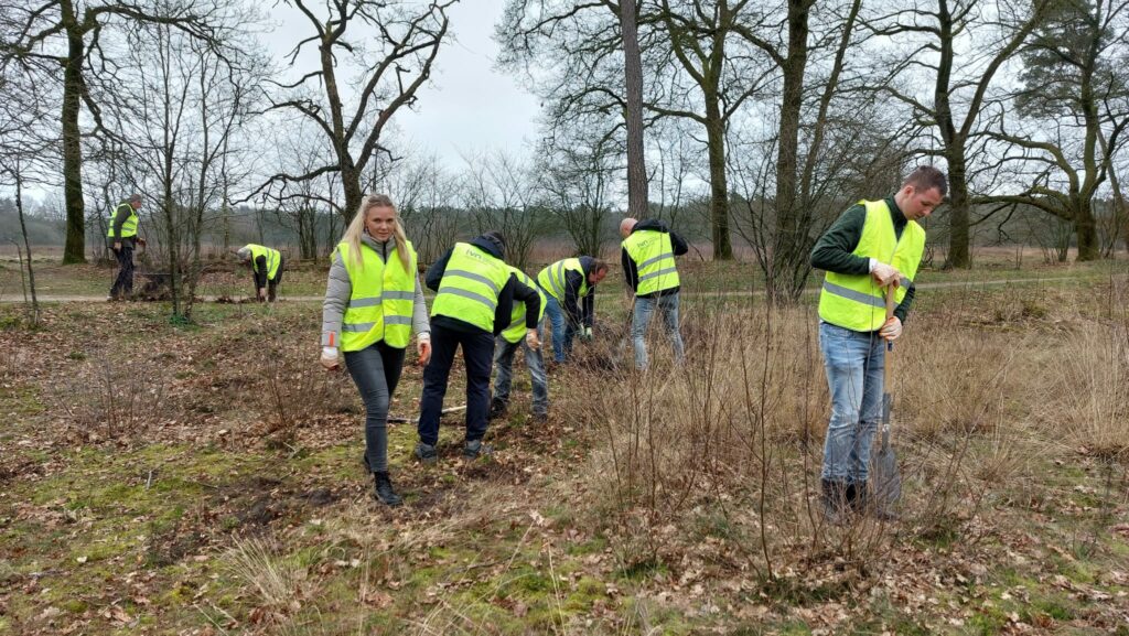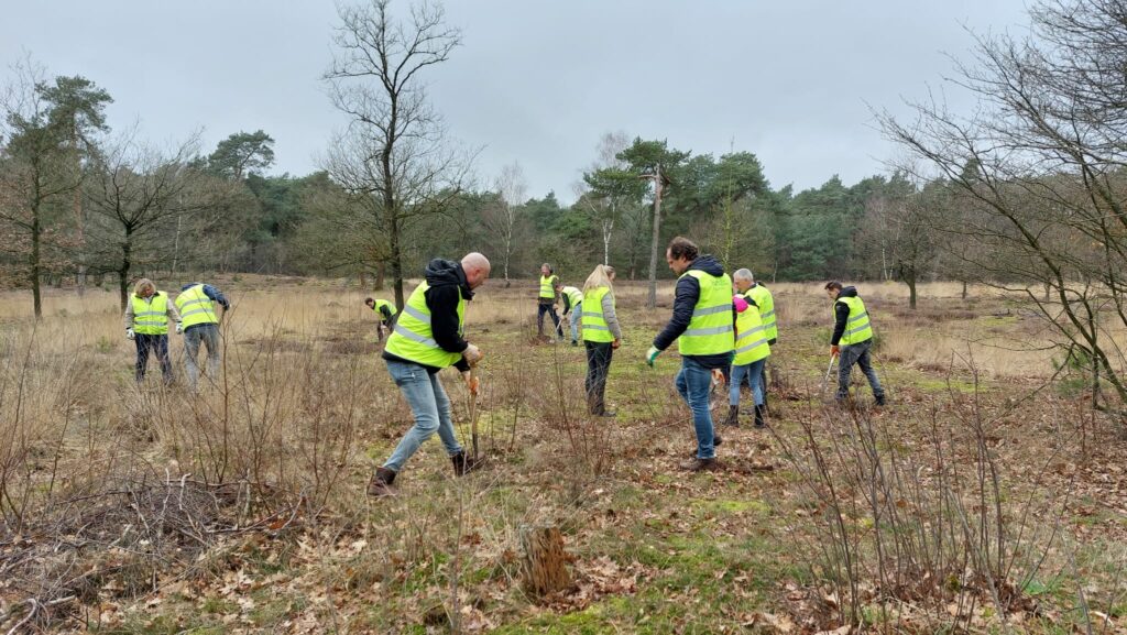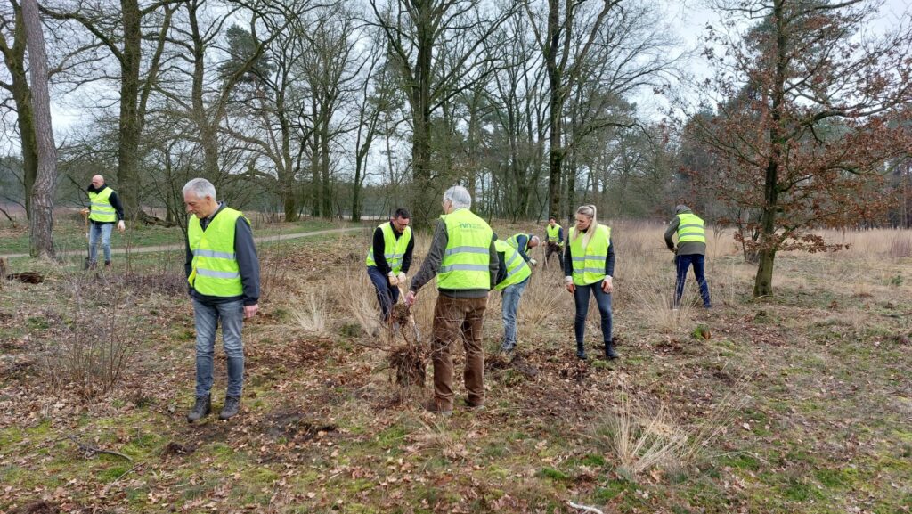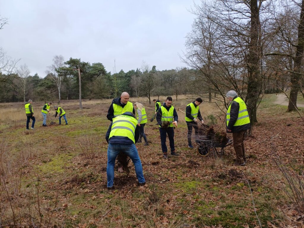 Maar ook weer een mooie dag, want het IVN kreeg ondersteuning van een 12-tal medewerkers van de Rabobank Hengelo, die ons kwamen helpen met het opschonen van de heide.
