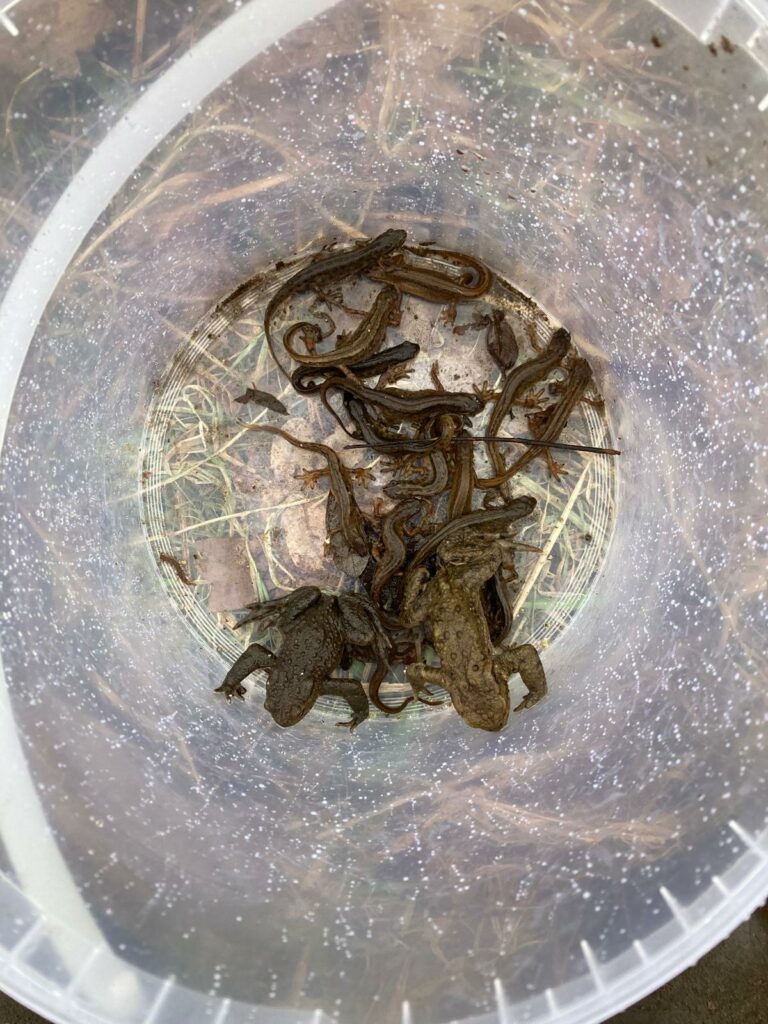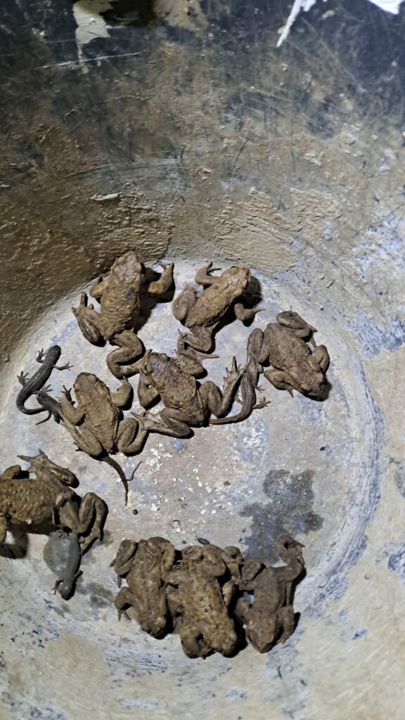 Resultaat: 364 salamanders , 14 padden + 2 kleine kikkers.