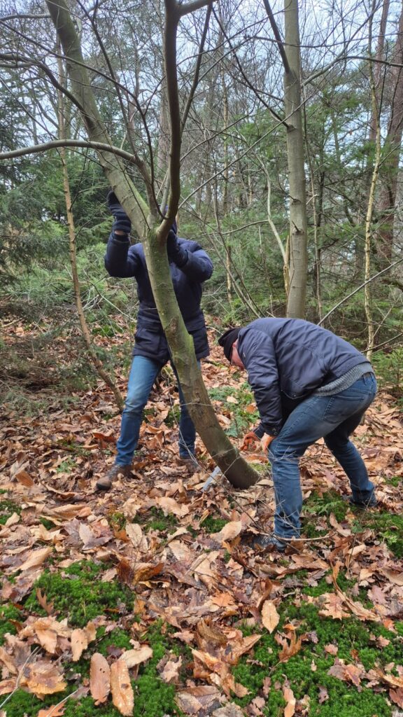 In een bosperceel, gelegen achter het Witte Hoes werd nodige opslag van berkenboompjes, dennenboompjes, Amerikaanse Eik en bramen verwijderd.