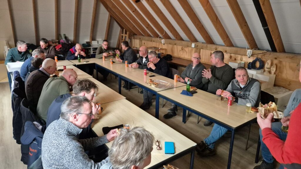 Rond 12.00 uur werden de heerlijke hamburgers, verzorgd door de Sterkerij gebracht, en die gingen er in als de bekende zoete broodjes.
