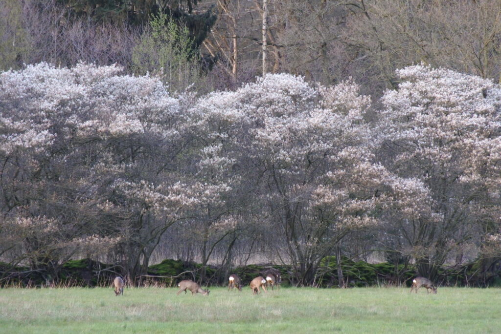 1e prijs bij de volwassenen was voor Arjanne Dannenberg. Zij maakte een prachtige foto van de bloeiende krentenbomen met daarvoor een sprong van 6 reeën.