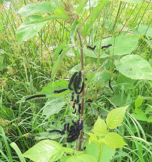 We zien ze nu massaal op de brandnetelstruiken, de rupsen van de Dagpauwoog.