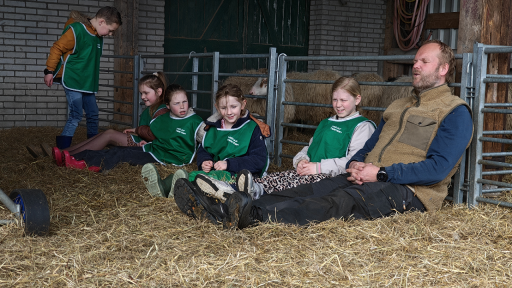 Ook deze keer leerden we weer allerlei feiten over de schapen. Bijvoorbeeld over hoe lang een schaap zwanger (drachtig) is. De ooien (vrouwtjes schapen) zijn 5 maanden en 5 dagen drachtig. Een handig ezelsbruggetje voor dit schapen feitje: je twee handen! Maar ook leerden we hoe je kan herkennen dat de bevalling begint. Hoe een lammetje geboren wordt (in de meeste gevallen: eerst de voorpootjes, dan het kopje en vervolgens de rest van het lijf) en dat daar eigenlijk zelden bij geholpen hoeft te worden.