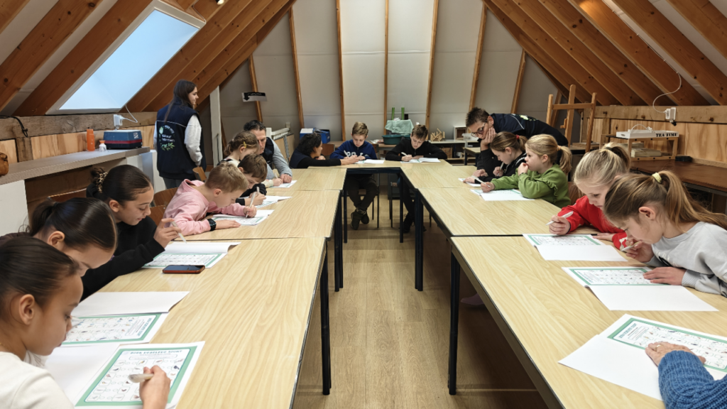 Na de uitleg over de vogels kregen de kinderen een ‘boekje’ met een paar opdrachten om te maken, om het geleerde direct toe te passen. Vervolgens was het tijd voor een filmpje. We hadden al geleerd waar we vogels mee kunnen bijvoeren. Nu leerden we hoe we dat op een leuke en creatieve manier kunnen doen. In het filmpje zagen we hoe we een vogelvoermannetje konden maken.